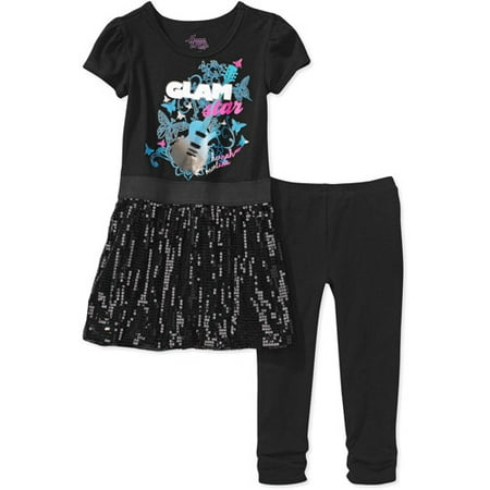 Disney Girls Hannah Montana Sequin Tee Dress And Legging Set