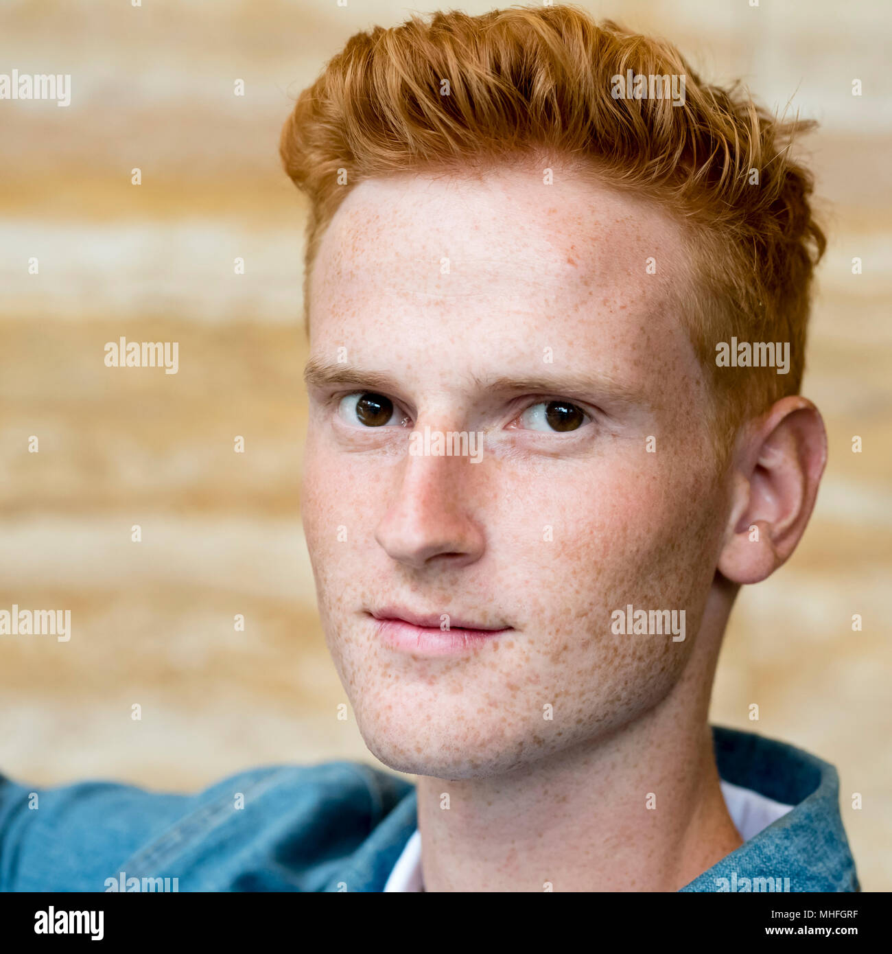 Closeup Portrait Of A Young Male Model With Red Hair