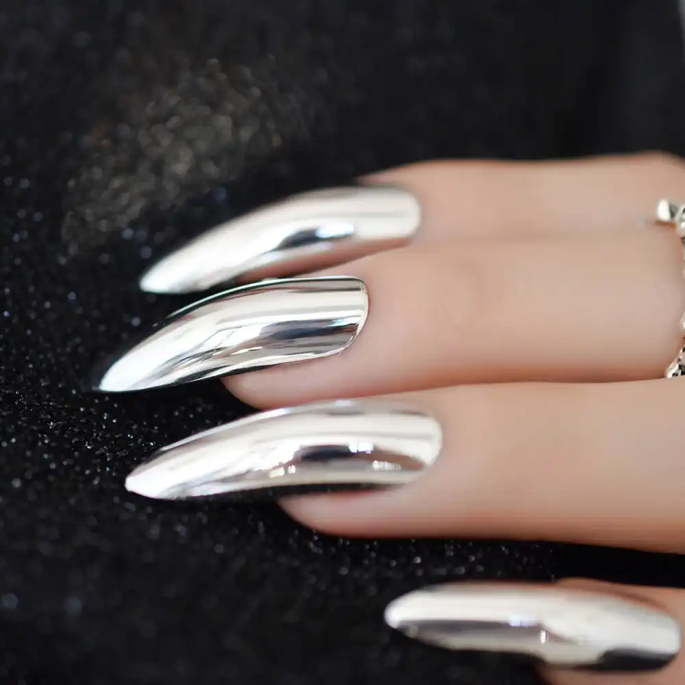 Extra Long Stiletto Mirror False Nails Silver Beautiful Shape Designer Press On Nails Colored Artificial Nail Tips 24 Ct Buy Stiletto Artificial