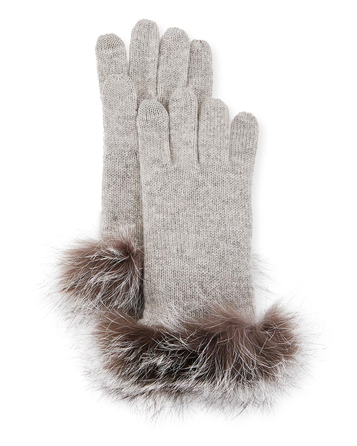Neiman Marcus Cashmere Tech Gloves W Fox Fur Cuff